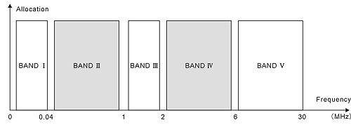 國(guó)際標(biāo)準(zhǔn)IEC 61603-1推薦了可用于音頻信號(hào)傳輸?shù)募t外輻射 調(diào)制頻段BAND Ⅱ(45kHz-1 MHz)和BAND IV (2MHz—6MHz)。其中BANDⅡ (45kHz-1MHz)主要用于會(huì)議用音頻傳輸系統(tǒng)及類似系統(tǒng):BAND IV (2MHz-6MHz)主要用于寬帶音頻及相關(guān)信號(hào)傳輸系統(tǒng)。