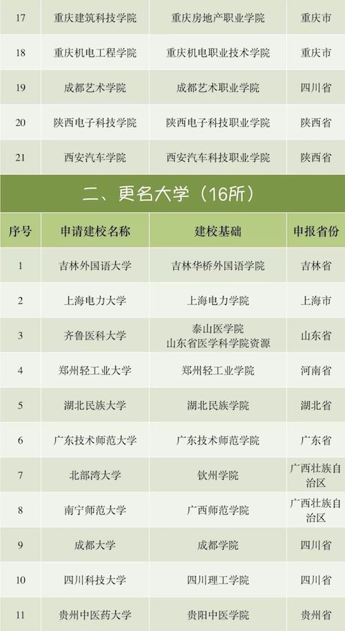 從2017年下半年開始,全國各地教育主管部門先后公示申報升格、更名和轉設的高校名單,共有數十所高校位列其中,新一輪高校更名大幕正式拉開。