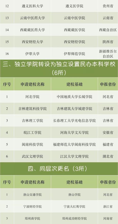 The following report, January 20th, Ministry of planning and development of Education officially announced the 2017 annual report is included in the expert review of higher school list, a total of 46 selected universities, including new undergraduate schools (21), renamed the University (16), the independent college to set up an independent set of private undergraduate schools (6 the name of the same level) and (3).